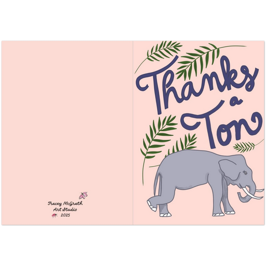 Thanks a Ton - Thank You Card - Cute Elephant - Pack of 10 Greeting Cards